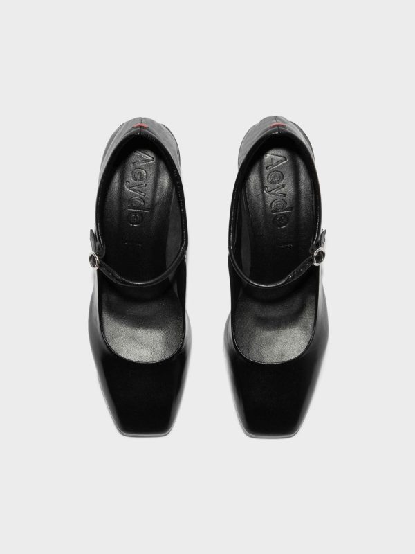 Referencing the key features of Aeyde’s iconic Uma–like Mary-Jane straps and sloped, squared toes–Aline is the alternative with wearable mid-height heels. This design is crafted from supple nappa leather.