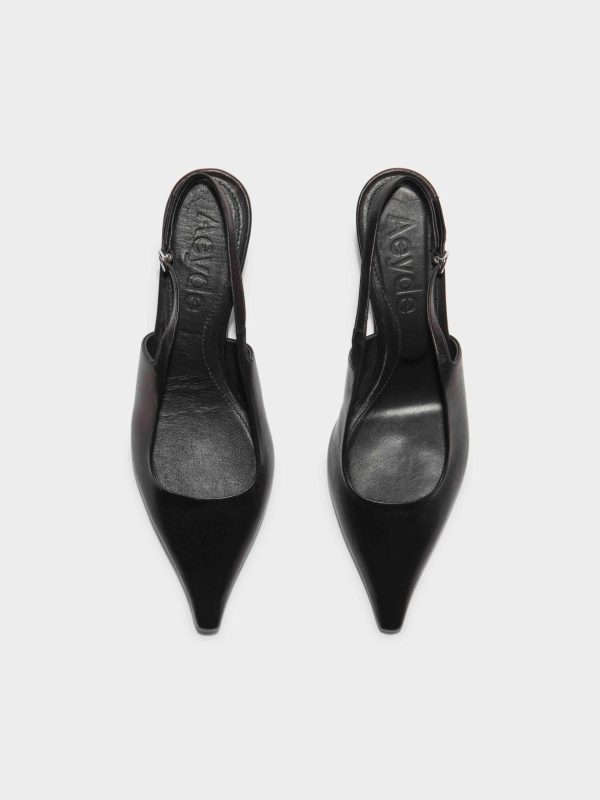 Catrina are Aeyde’s elegant chisel-toe pumps featuring tapered kitten heels, adjustable slingback straps, and bespoke anti-slip soles.