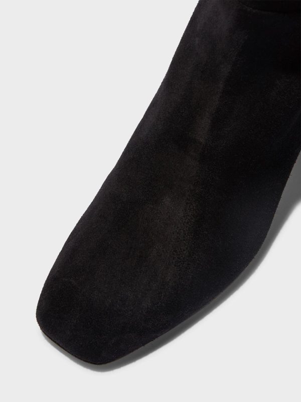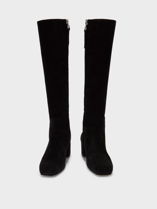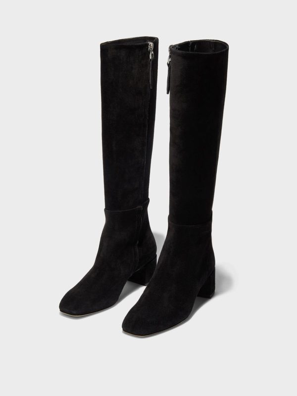 Laura are sleek knee-high boots with squared toes, sturdy block heels, slim shafts, and full-length zips.