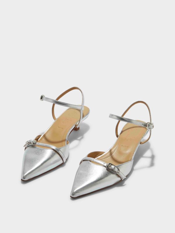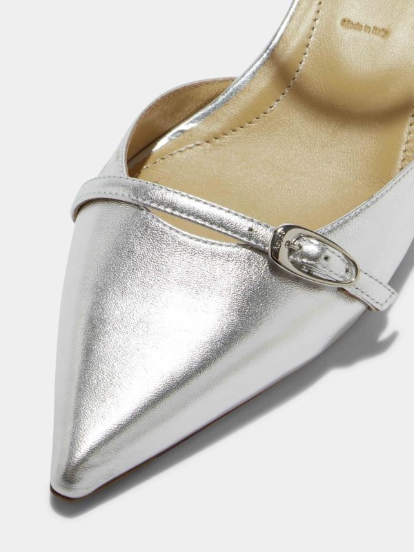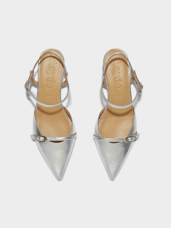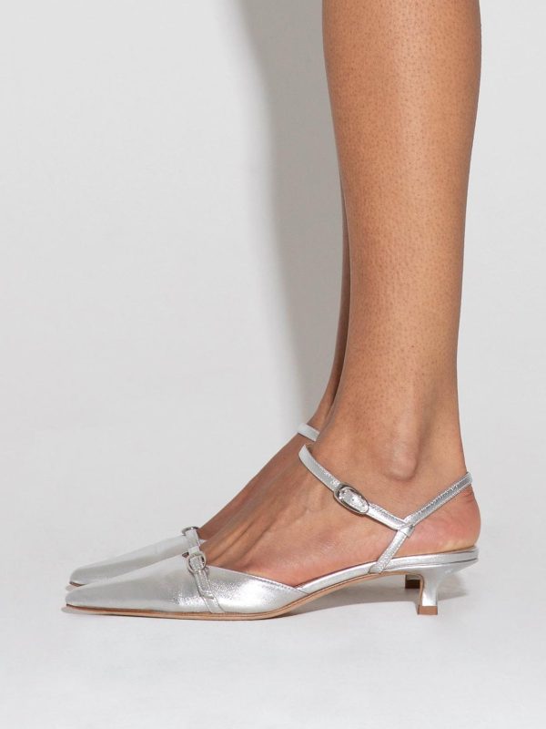 Elevated shoes with kitten-heels, the Melia pumps are an event-ready style from Aeyde. Adding to this look and feel is the design’s laminated silver nappa leather, which will acquire a beautifully burnished effect over time.