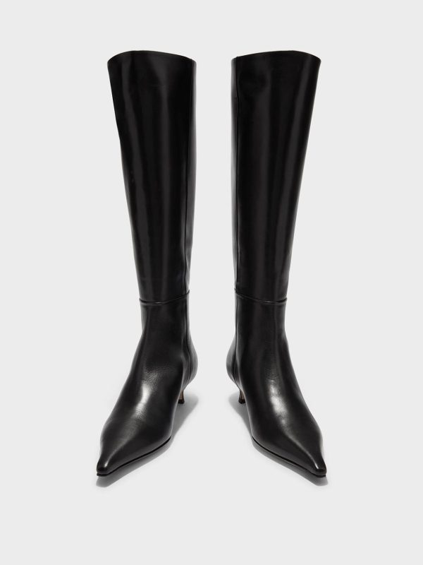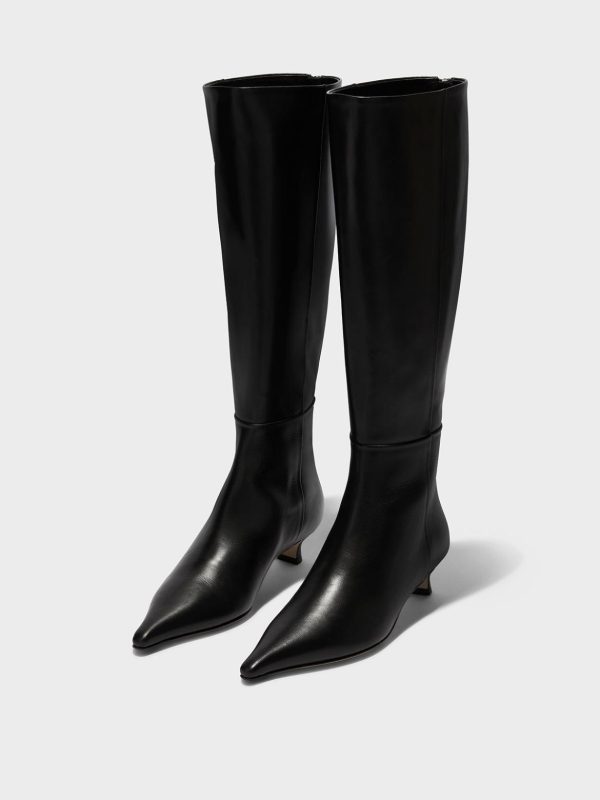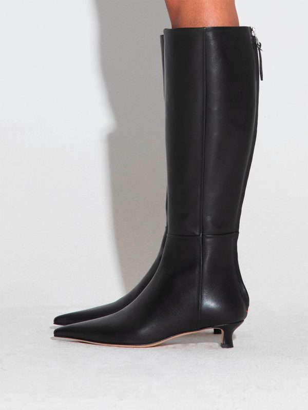 Zazie are Aeyde’s chic, chisel-toe knee-high boots designed in sleek profile with wearable kitten heels and understated seamed shafts. This design is the sister style to Aeyde’s Zoe ankle boots.