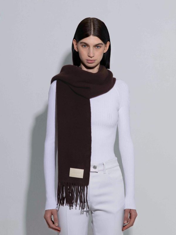Bela is Aeyde’s classic scarf made from soft cashmere featuring fringe detailing and a brand-embossed leather label. Made in Italy.