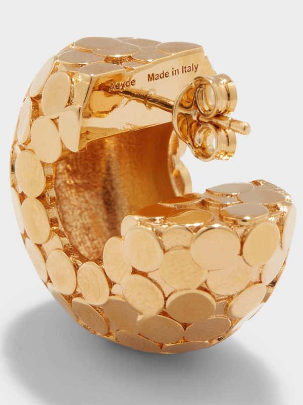 Aeyde jewelry is made in Italy by craftspeople renowned for their expertise in working with upcycled materials and palladium and 18kt gold plating.