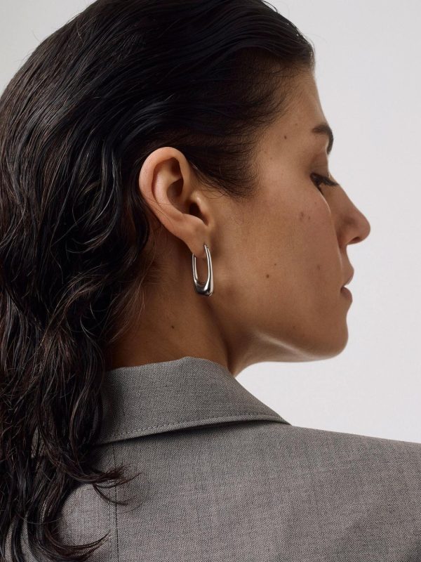 Ellis are medium-sized contemporary drop-hoop earrings that balance slender proportions with sculptural bases.