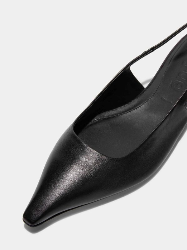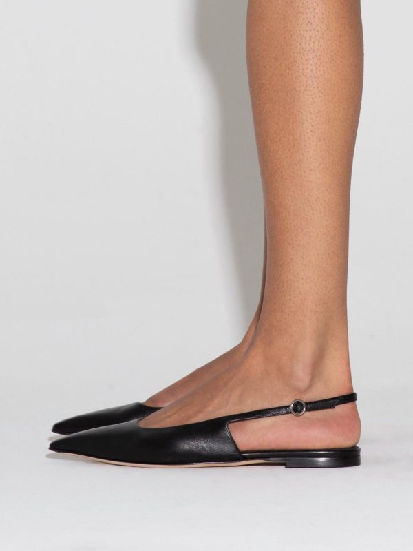 Expanding on Aeyde’s accentuated point-toe family, the Fedora slingback flats balance brand signatures and new design features. Crafted from supple nappa leather, this pair has contemporary square vamps and slender straps for an elegant look and feel.