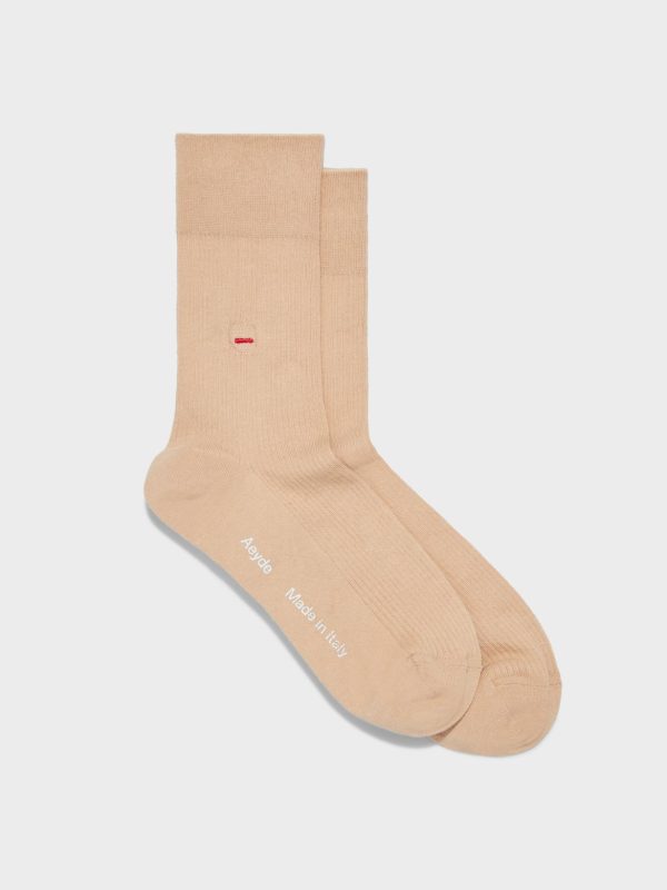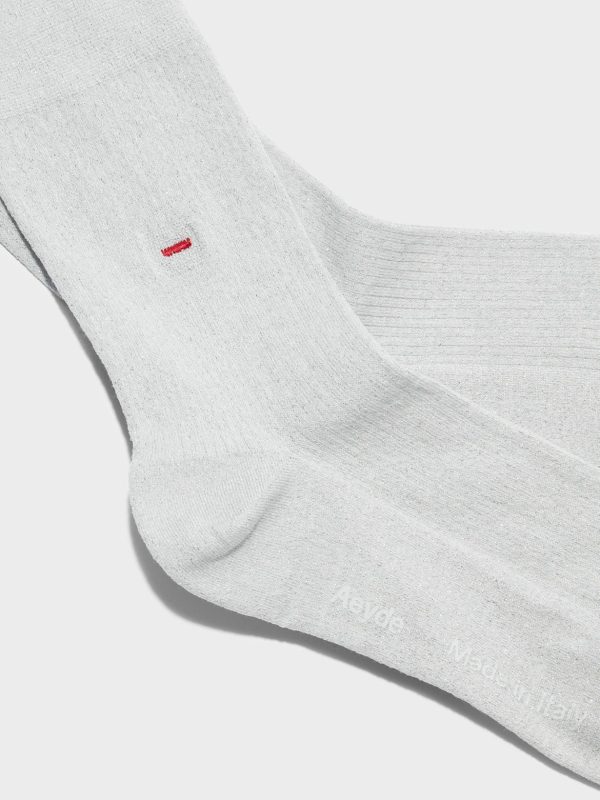 Jamie are simple ribbed cotton socks with a red stitch, an Aeyde signature.