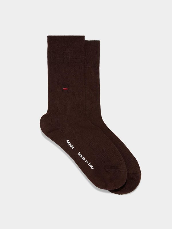 Jamie are simple ribbed cotton socks with a red stitch, an Aeyde signature.