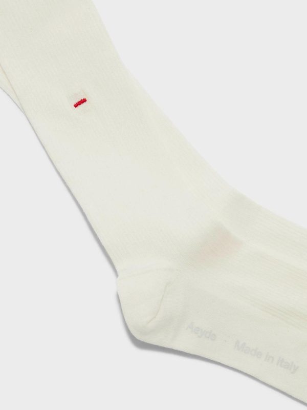 Jay are simple cotton knee-high socks with a red stitch, an Aeyde signature.