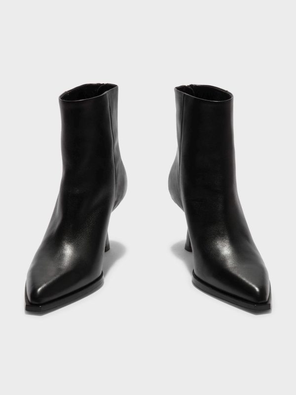Aeyde’s Kala ankle boots are a sophisticated design featuring exaggerated point toes and tapered stiletto heels.