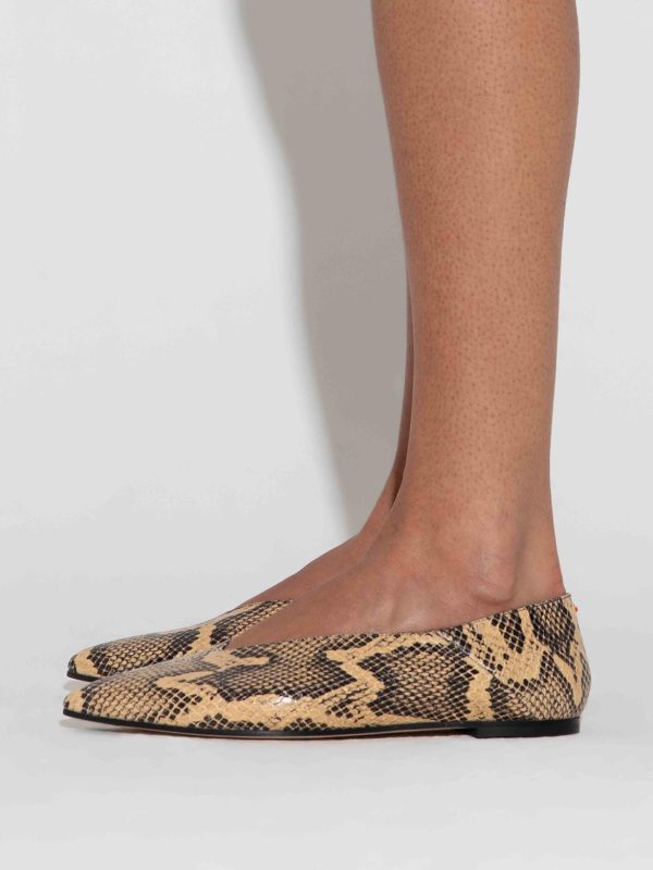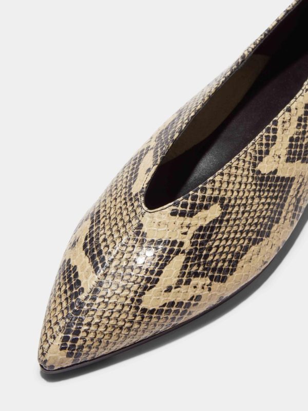 Moa are the ballet flats that turn understated details into key features, as seen with this design’s defined stitched seams. Crafted from luxe snake-effect calfskin leather, this style has high vamps that provide coverage and comfort.