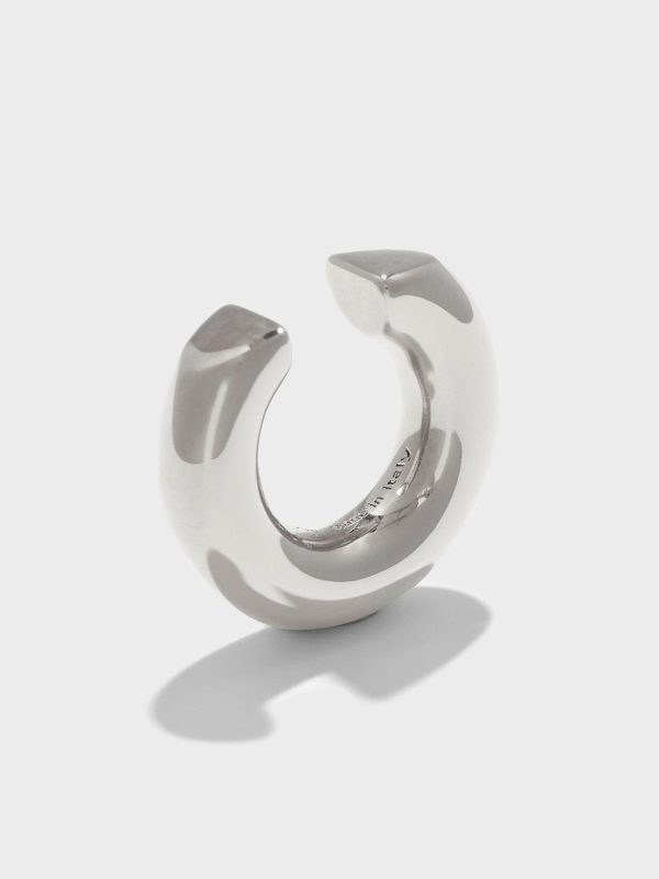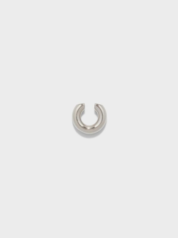 Sela is a robust design modeled on hoop earrings but realized as a singular ear cuff that hugs the ear and can be worn on either the right or left side.