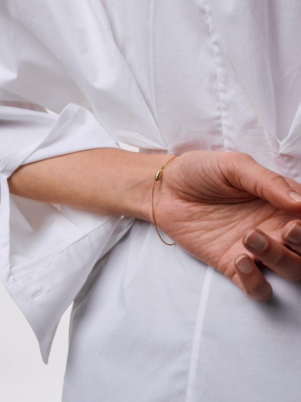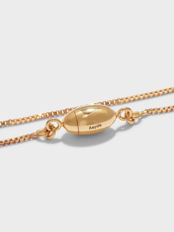 Sony, a delicate chain bracelet and the accompanying style to the Stevie chain necklace, remains true to Aeyde’s aesthetic and is designed in minimal form with an articulated clasp.