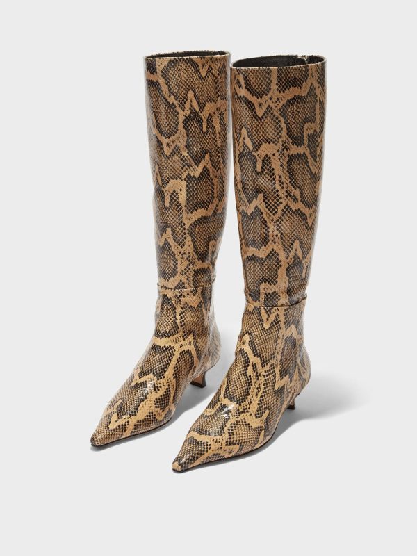 Zazie Snake-Effect Leather Knee-High Boots | Women Aeyde Knee-High Boots